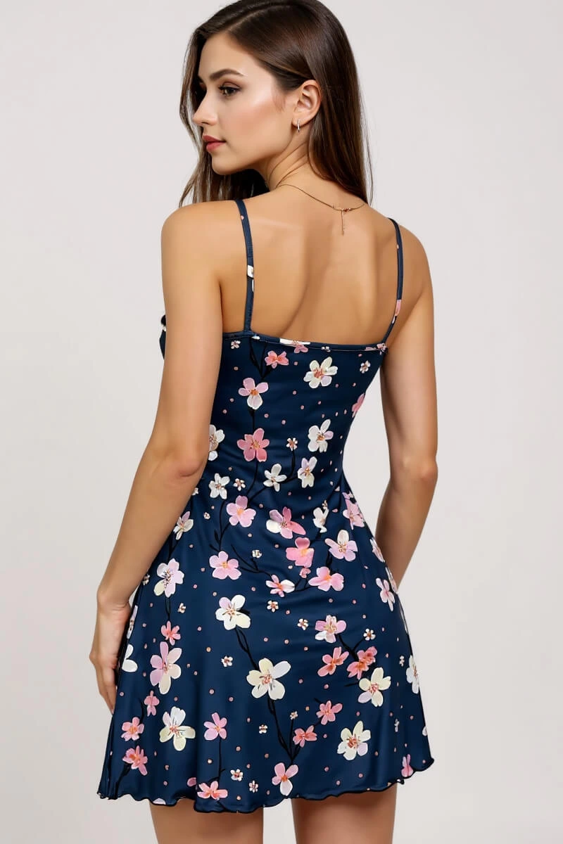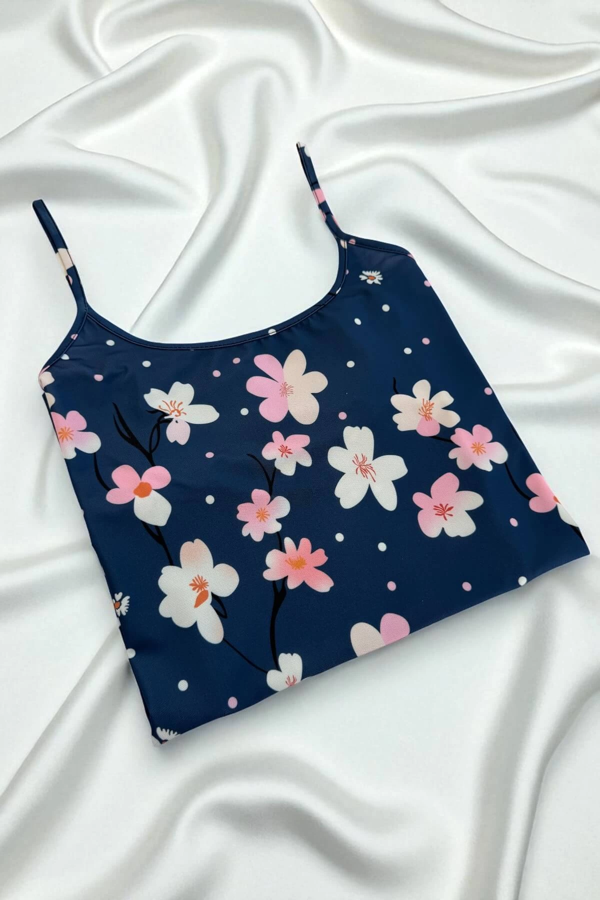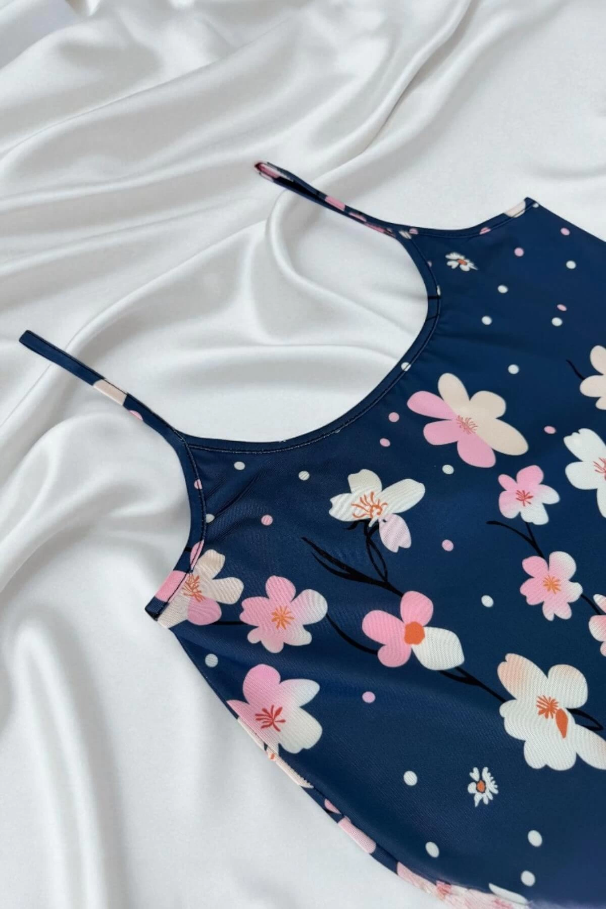 Çiçek Desenli Mavi Askılı Gecelik TM1355